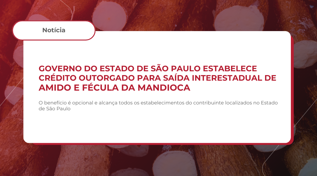 Os produtos beneficiados com os créditos outorgados estão classificados nos seguintes códigos da Nomenclatura Comum do MERCOSUL – NCM: (i) amido de mandioca, 1108.19.00; (ii) amido modificado e dextrina de mandioca, 3505.10.00; e (iii) fécula de mandioca, 1108.14.00.