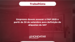 Foi publicada no dia 19/09/2024, no Diário Oficial da União (DOU), a Portaria interministerial MPS/MF nº 4 de 2024, a qual dispõe sobre a disponibilização do resultado do processamento do Fator Acidentário de Prevenção – FAP em 2024, com vigência para o ano de 2025 e dos róis dos percentis de frequência, gravidade e custo, por Subclasse da Classificação Nacional de Atividades Econômicas – CNAE 2.3, calculados em 2024, e sobre o julgamento de contestações e recursos apresentados pelas empresas em face do índice FAP a elas atribuído.