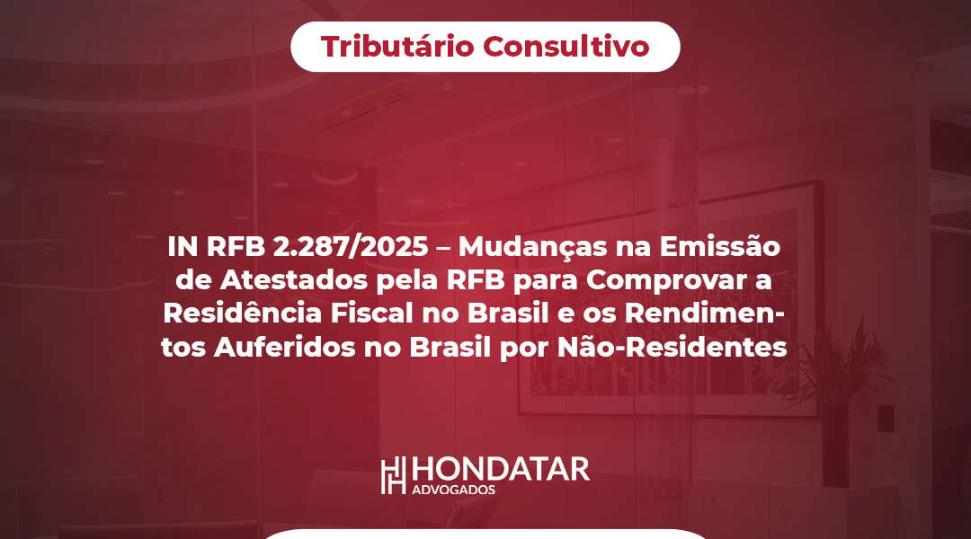 Foi publicada, em 03.11.2025, a Instrução Normativa (“IN”) RFB 2.287/2025, que determina os procedimentos para comprovação de residência fiscal no Brasil e de rendimentos auferidos no Brasil por não-residentes, essencial em transações internacionais.