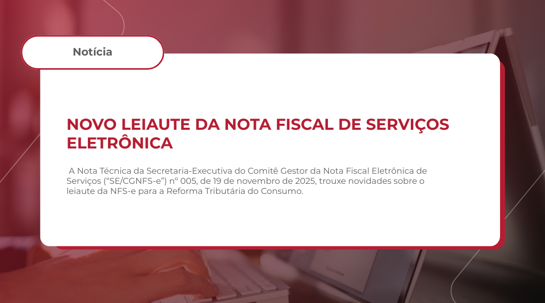 A Nota Técnica da Secretaria-Executiva do Comitê Gestor da Nota Fiscal Eletrônica de Serviços (“SE/CGNFS-e”) nº 005, de 19 de novembro de 2025, trouxe novidades sobre o leiaute da NFS-e para a Reforma Tributária do Consumo.