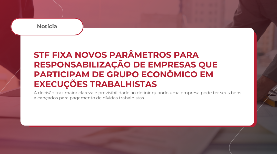 O Supremo Tribunal Federal concluiu o julgamento do Tema 1.232 (de repercussão geral) e estabeleceu diretrizes que impactam diretamente a forma como empresas, especialmente aquelas estruturadas em grupos econômicos, poderão ser responsabilizadas na fase de execuções trabalhistas.