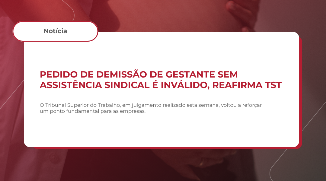 O Tribunal Superior do Trabalho, em julgamento realizado esta semana, voltou a reforçar um ponto fundamental para as empresas: o pedido de demissão de empregadas gestantes somente é válido quando realizado com a assistência do sindicato da categoria. Sem essa formalidade, a rescisão é considerada nula, mesmo que a própria trabalhadora manifeste o seu interesse em deixar o emprego.