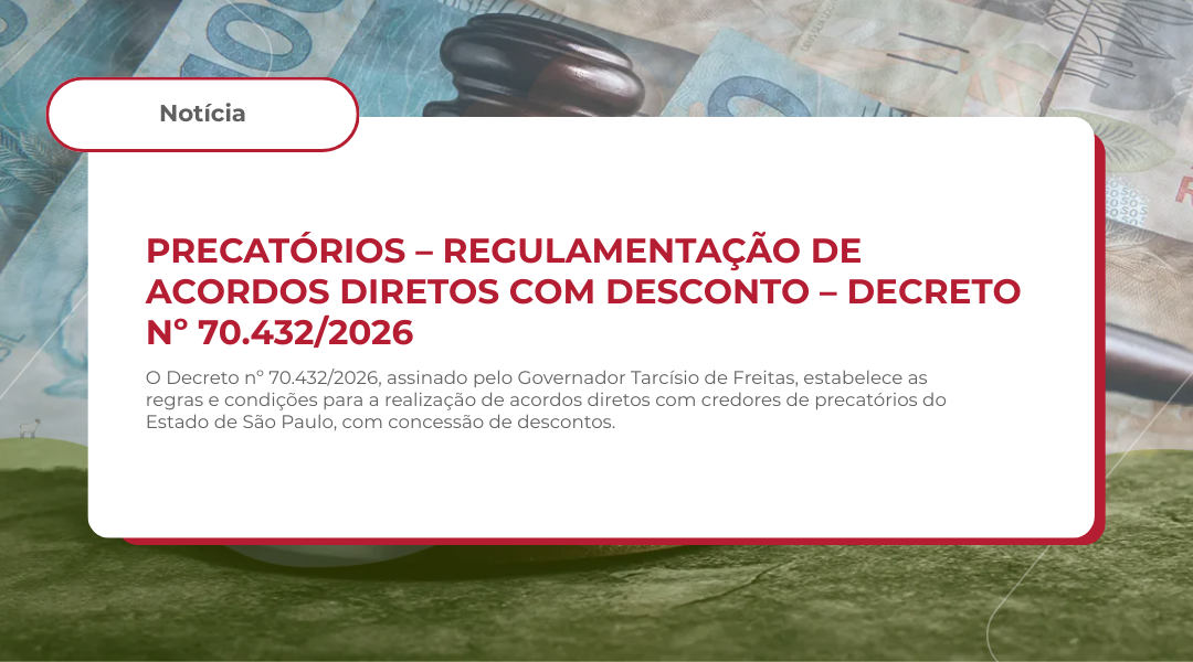 O Decreto nº 70.432/2026, assinado pelo Governador Tarcísio de Freitas e publicado em 11 de março de 2026, estabelece as regras e condições para a realização de acordos diretos com credores de precatórios do Estado de São Paulo, com concessão de descontos (deságio). A medida visa acelerar a liquidação da fila de precatórios por meio de adesões voluntárias de credores aptos.