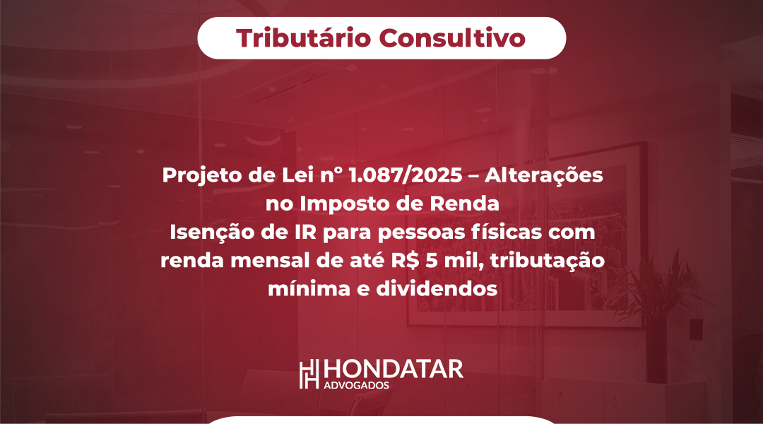 O Projeto de Lei nº 1.087/2025 propõe alterações importantes relacionadas ao Imposto de renda, dentre as quais destacamos:
