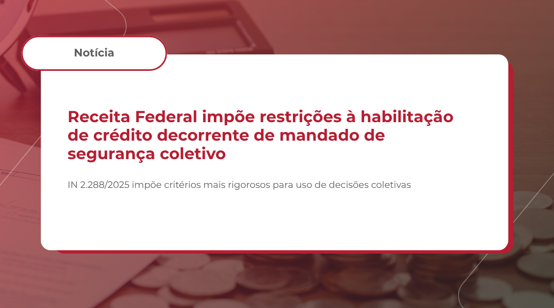 Foi publicada, no dia 10/11/2025, a Instrução Normativa (IN) RFB nº 2288/2025, que altera a IN RFB nº 2055/2021, para disciplinar de forma mais rigorosa a habilitação de créditos tributários reconhecidos em mandados de segurança coletivos, usualmente impetrados por associações e sindicatos.